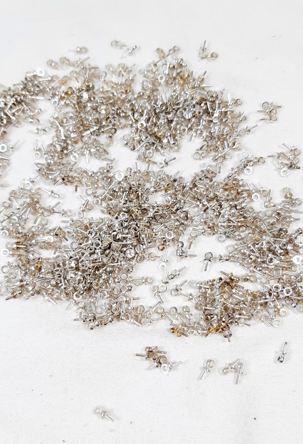 Apprêts pour création de bijoux : Lot de 100 attaches pendentif, clous avec oeillet métal coloris argent.
