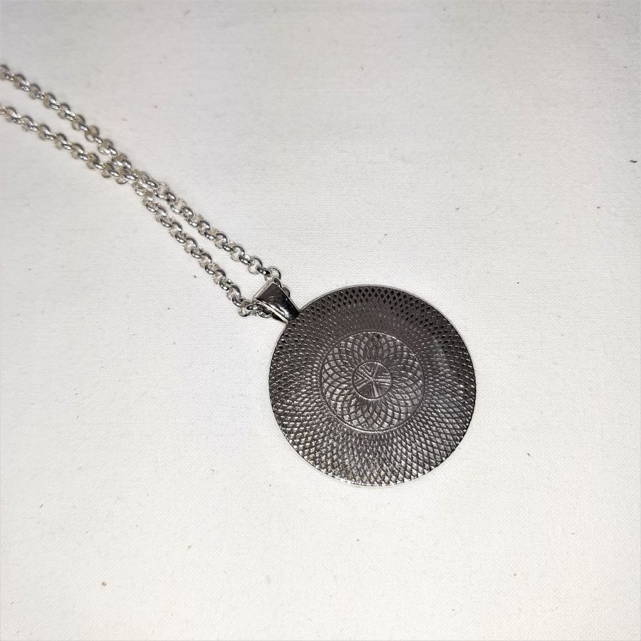 Facile à porter et à harmoniser: pendentif en laiton et cuir de vachette noir, impression croco, tannage minéral.
