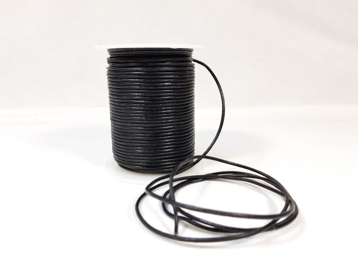 Pour toutes vos créations: cordon de cuir bovin tannage minéral, diamètre 2mm coloris noir.