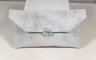 Pochette en cuir de chèvre argenté, tannage minéral.